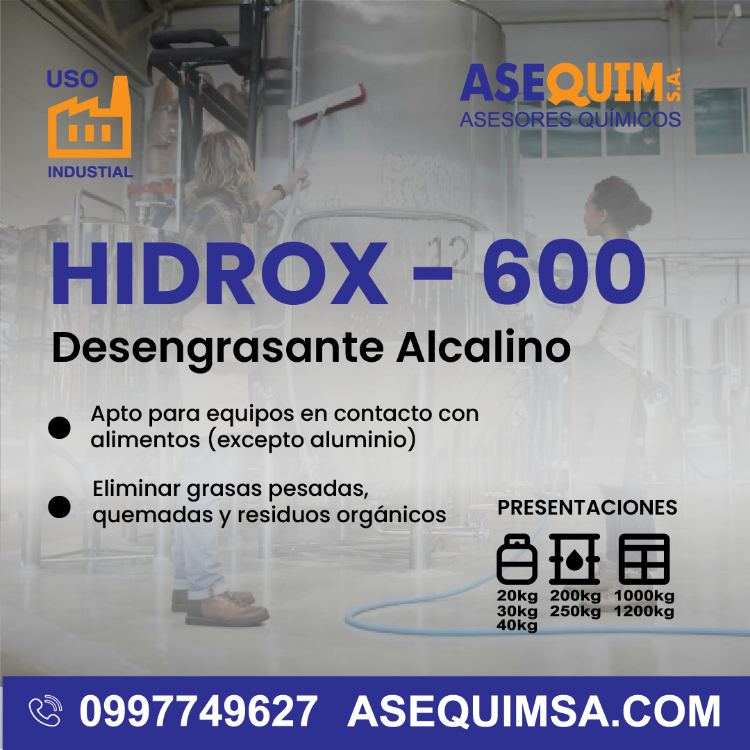 El HIDROX-600 es un desengrasante alcalino concentrado diseñado para eliminar grasas pesadas, quemadas y residuos orgánicos en entornos industriales y domésticos. Su fórmula avanzada combina agentes surfactantes y dispersantes, garantizando una limpieza profunda sin dañar superficies en contacto con alimentos.